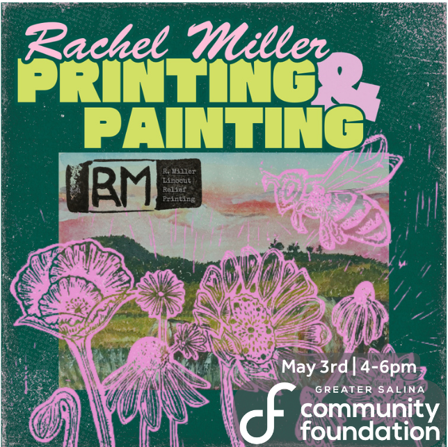 Rachel Miller is a sophomore English and yearbook/publications teacher based in Salina, Kansas. When she is not teaching or spending time with her son, she enjoys carving linocut prints and painting. Most importantly, she is a mother to an amazing four-year old boy. Rachel’s artwork is largely influenced by the nostalgic recollection of her childhood growing up on a family farm in Western Kansas. Her mother’s keen ability to capture the beauty of Kansas is the inspiration for her most recent collection, which will be on display.